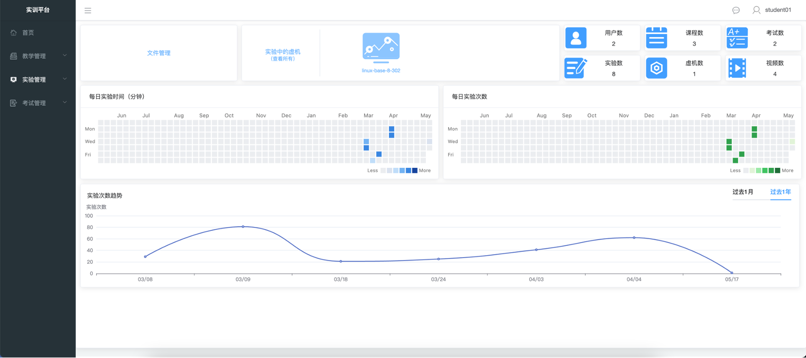 为学生更方便的进行各个技术领域的实训,为学生提供了终端、桌面和Jupyter三种虚拟机交互界面
